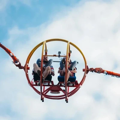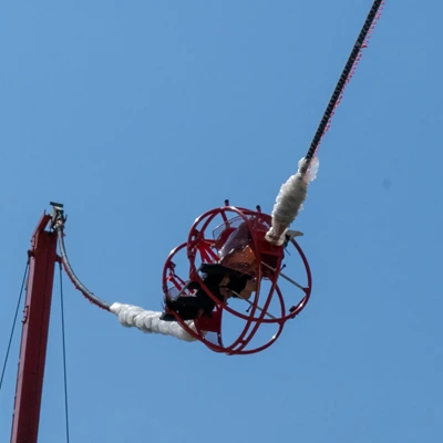 Experience an adrenaline rush with Reverse Bungee in Rishikesh! Riders are securely strapped into a two-seater container and launched 180 feet into the air by a bungee rope. This thrilling activity offers a quick, exhilarating, and safe adventure, with the added twist of being done backwards. In Rishikesh, safety is paramount, ensuring a secure and enjoyable experience. Sit within a ring-shaped barricade connected by elastic ropes and get catapulted skyward at 200 km/h in just 3 seconds, while the cage rotates both clockwise and anticlockwise, giving you an unforgettable thrill. Try this exhilarating Reverse Bungee for an unforgettable adventure!